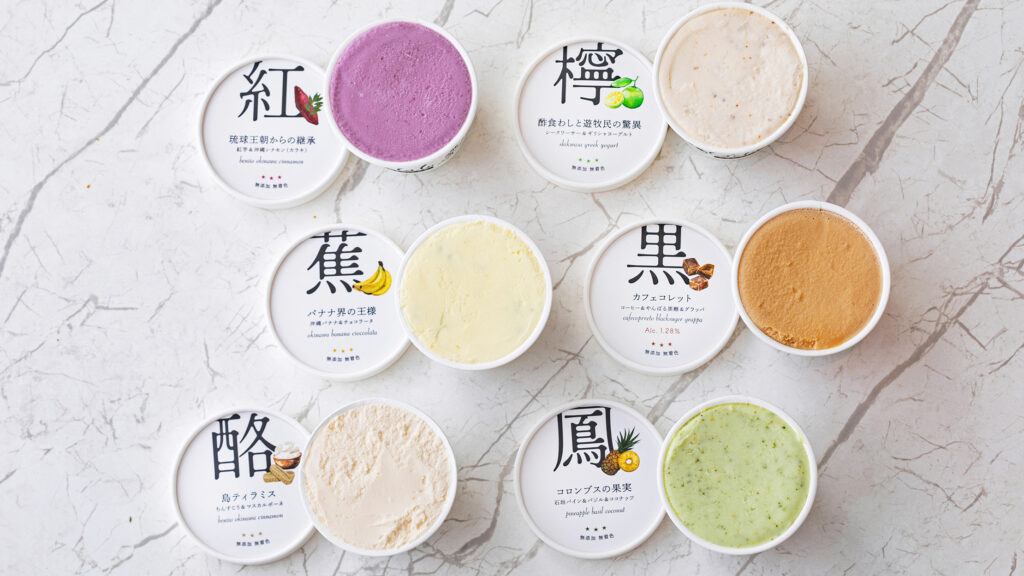 当社が沖縄で運営するレストランシェフ考案の紅芋、パイン、島バナナ、黒糖など、沖縄逸材を掛け合わせた“沖縄感じる”唯一無二の6種